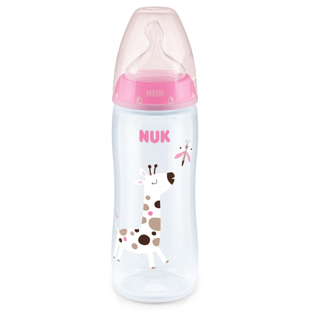 Caracteristici Biberon Nuk First Choice PP 300 ml, Control Temperatura, Tetina Silicon M, 0-6 luni, Girafa: