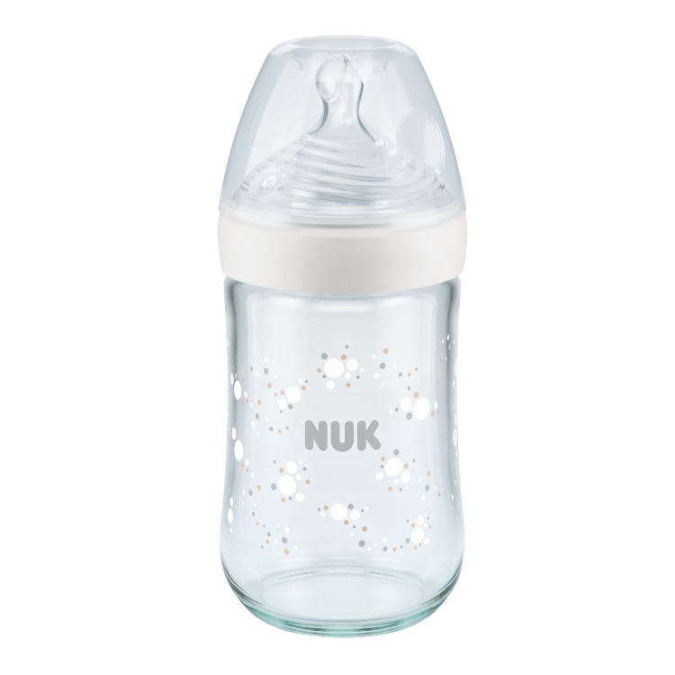 Caracteristici Biberon Nuk Nature Sense Sticla 240 ml Control Temperatura Tetina Silicon M 6-18 luni Alb: