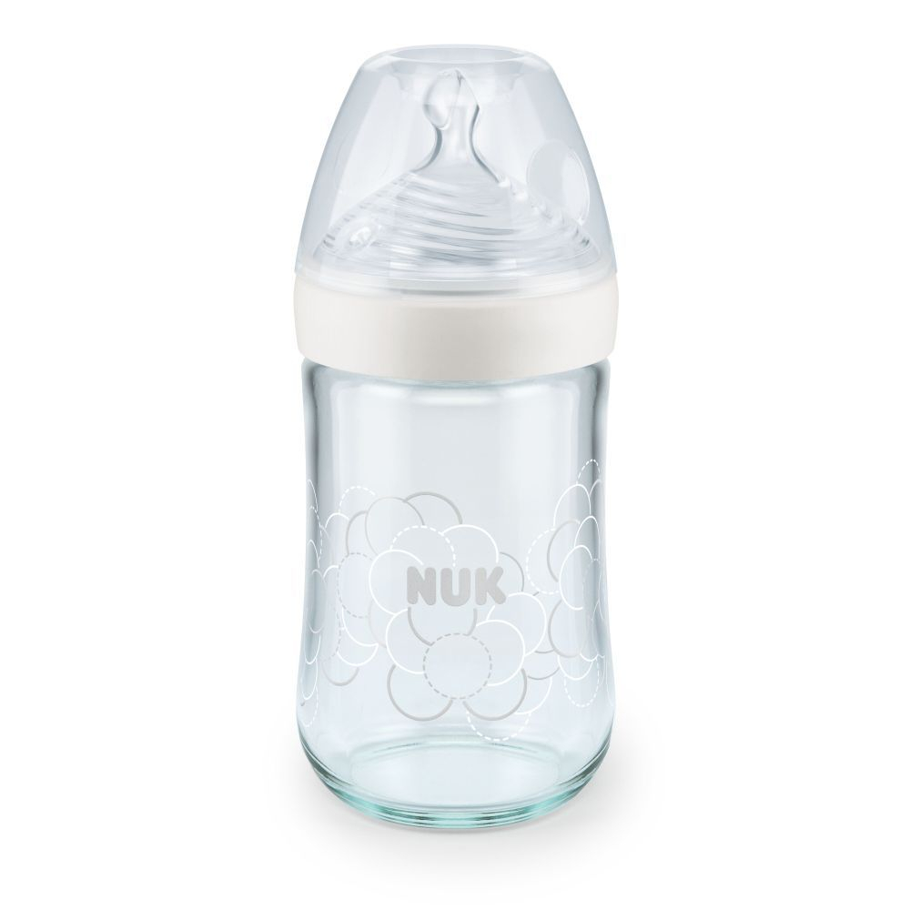 Biberon Nuk Nature Sense Sticla 240 ml Tetina Silicon Orificiu M 0-6 luni Alb - Modelat dupa forma sanului
