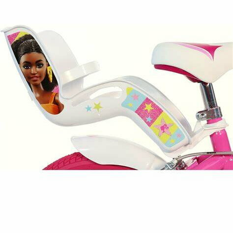 Pentru confort, Bicicleta copii 14" - Barbie roz este prevazuta cu scaun ergonomic moale. Cosul spatios din fata este practic pentru jucarii sau obiecte mici, iar scaunul pentru papusa din spate transforma fiecare plimbare intr-un joc.