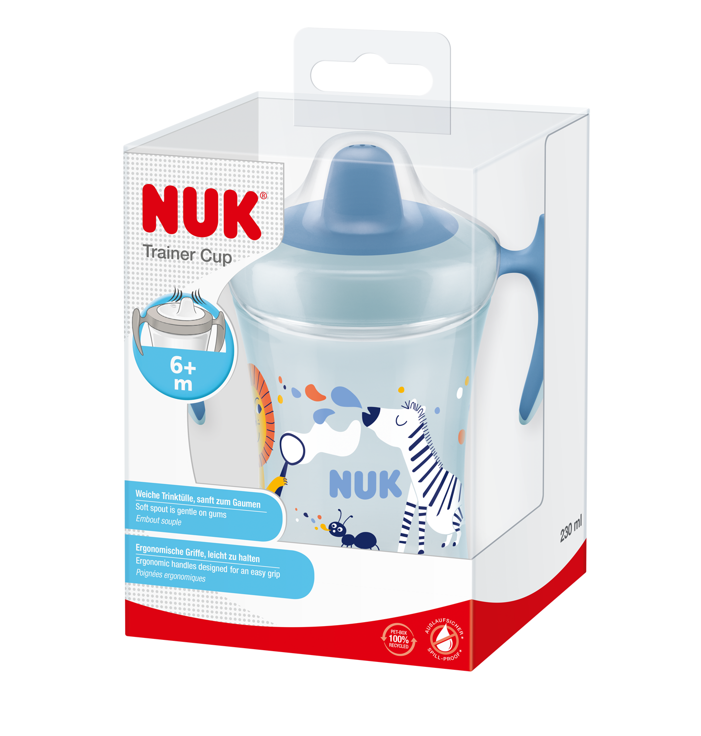 Cana Trainer NUK este formata din componente usor de demontat si remontat, care se pot curata simplu in masina de spalat vase. Aceasta face ca ingrijirea si utilizarea zilnica sa fie foarte practica pentru parinti.