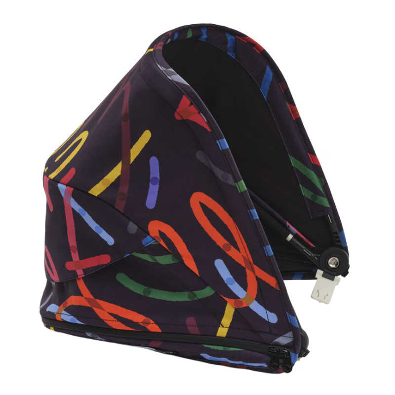 Capotina Bugaboo Bee 6 este accesoriul perfect pentru carucior, ideala pentru a oferi umbra in zilele insorite. Designul colectiei Bugaboo Art of Discovery cu imprimeu jucaus dar sofisticat a fost creat de renumitul artist olandez Jordy van den Nieuwendijk si prezinta palete vibrante de culori si structuri de forme simplificate, inspirate din viata plina de intorsaturi a parintilor. Aceasta capotina vine cu o rata de protectie solara UPF 50+ si nu numai ca iti protejeaza copilul de razele solare, dar si de vant si ploaie.