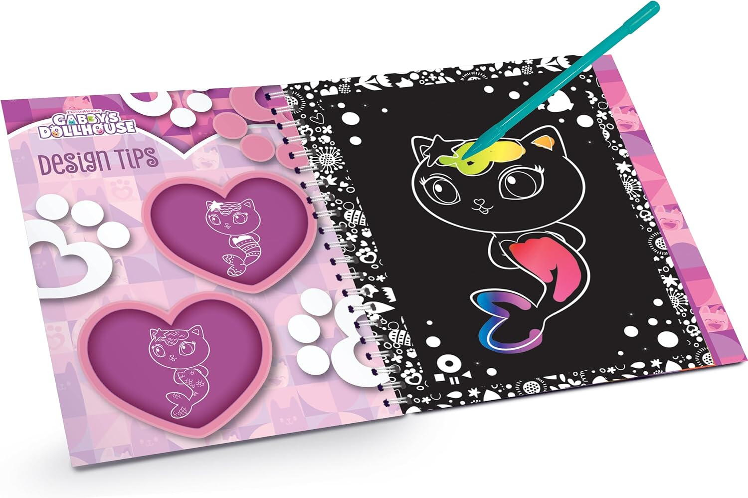 Carticica de razuit Gabby's Dollhouse & pisicute – Magia culorilor la fiecare zgariere transforma joaca intr-o experienta artistica spectaculoasa! Copiii pot descoperi ilustratii vibrante doar prin razuire, fara a folosi vopsea sau alte materiale murdare.