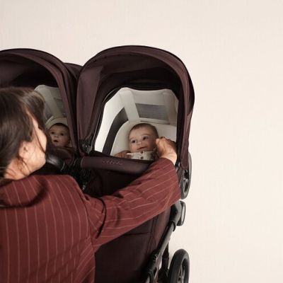 Pozitionarea alaturata a celor doi copii simplifica interactiunea constanta cu acestia si permite acces egal la fiecare landou sau unitate de scaun. Pentru parinte, aceasta configuratie inseamna verificare rapida, acces mai usor la centuri, copertine si elementele de confort, fara a muta copilul dintr-o pozitie in alta.