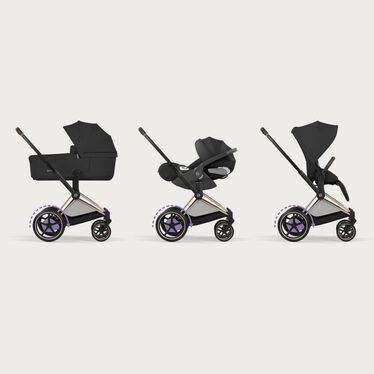 Configuratia Carucior Cybex ePriam Comfort Matt Black Sepia Black 2 in 1 include componentele esentiale pentru utilizare de la nastere, fara a fi nevoie de completari obligatorii pentru configuratia de baza.