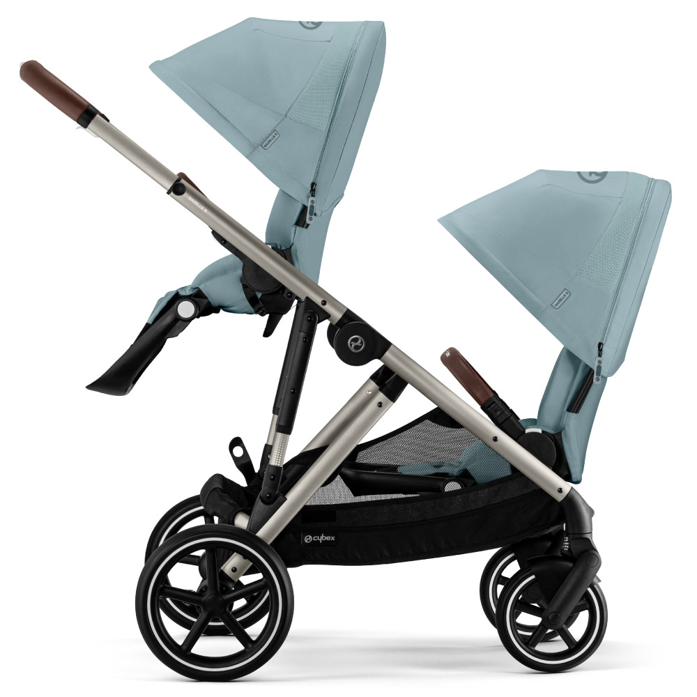 Caruciorul pentru gemeni Cybex Gazelle S permite pana la 23 de configuratii, ce includ unitatile de scaun, landourile, scoicile Cybex si cosul de cumparaturi detasabil. Poate fi folosit in urmatoarele moduri: