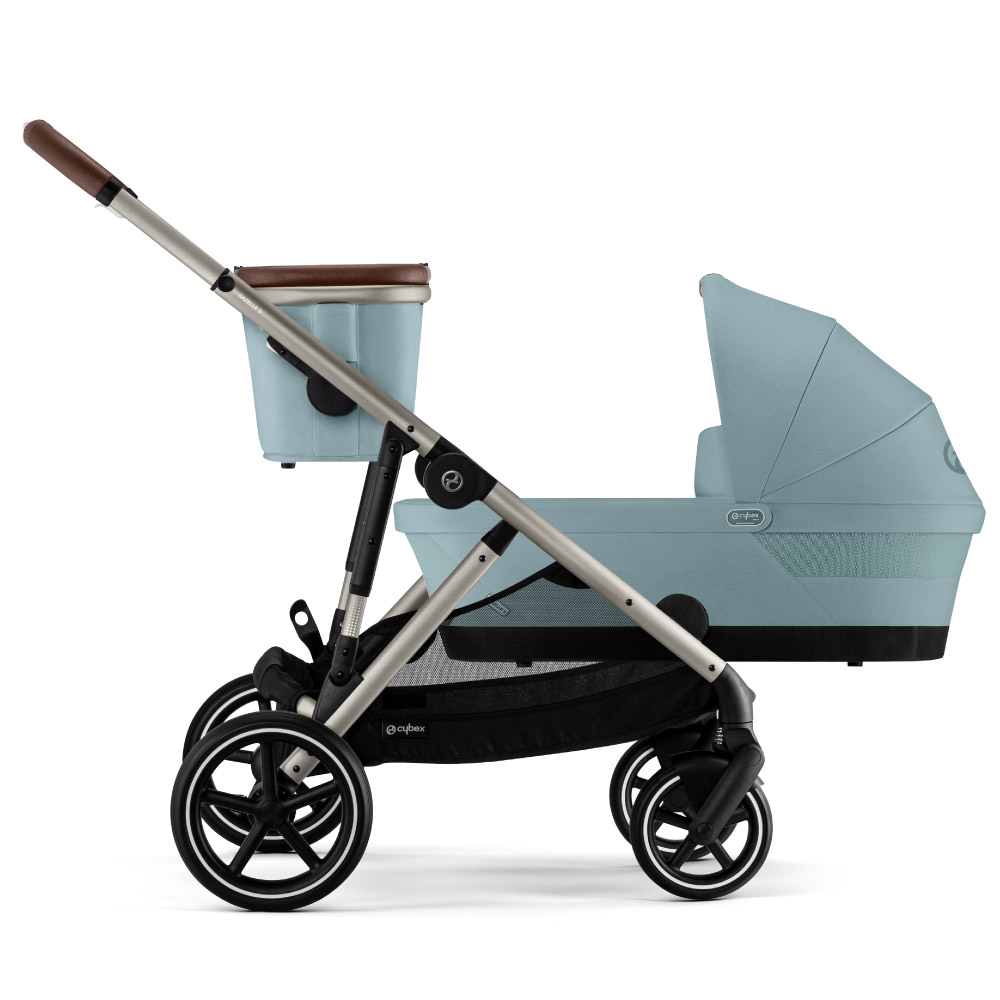 Carucior Cybex Gazelle S Taupe/Sky Blue echipat cu un cos de cumparaturi suplimentar detasabil, facand din el companionul ideal atunci cand mergeti la piata sau va plimbati prin magazinele din centrul orasului.