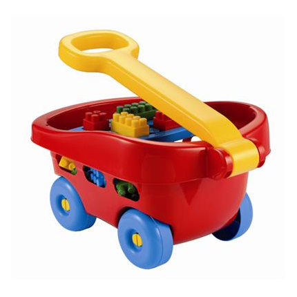 Carucior cu 60 de cuburi colorate pentru copii cu varsta 18 luni+.