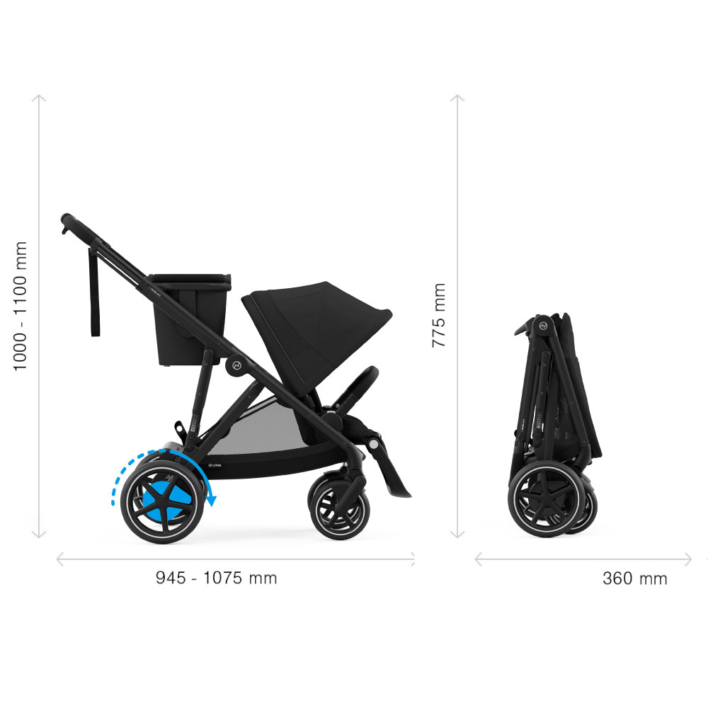 In ciuda dimensiunilor sale, acest Carucior Cybex e-Gazelle S Moon Black se pliaza compact, pentru a incapea cu usurinta in spatiul de depozitare sau in portbagajul unei masini.