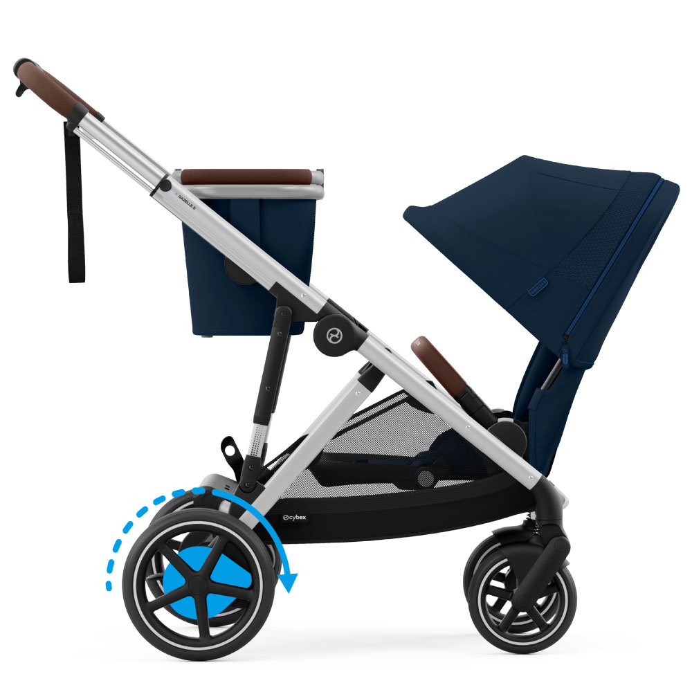 In ciuda dimensiunilor sale, acest Carucior Cybex e-Gazelle S Ocean Blue se pliaza compact, pentru a incapea cu usurinta in spatiul de depozitare sau in portbagajul unei masini.