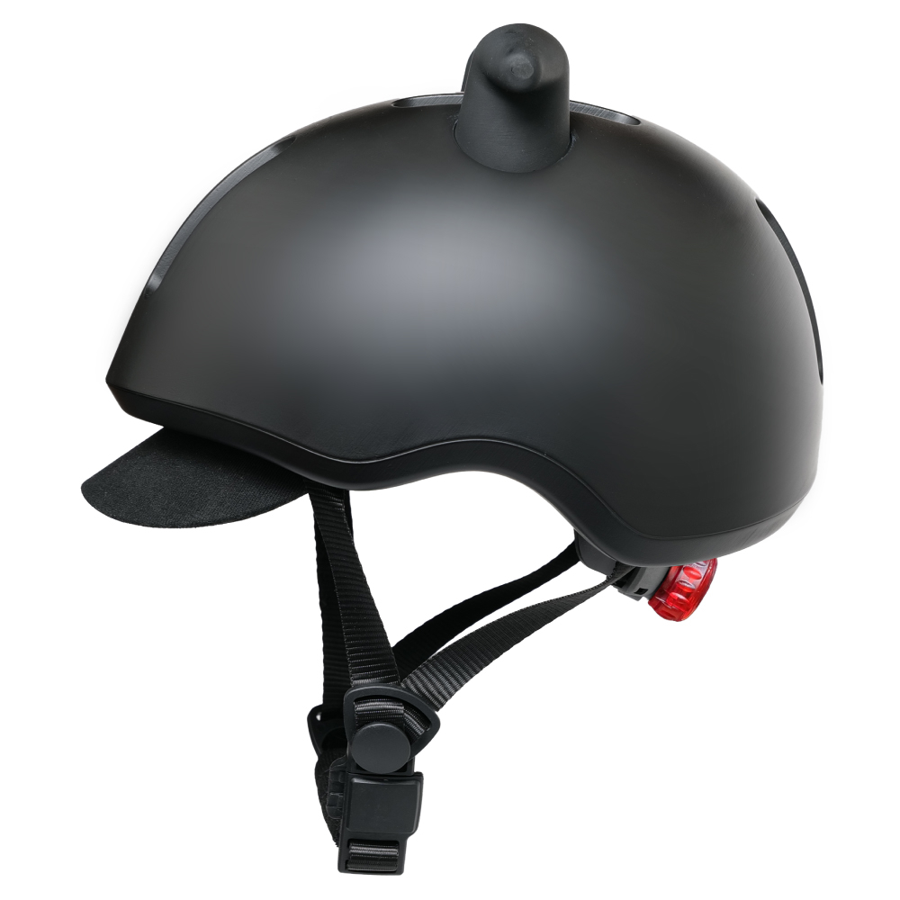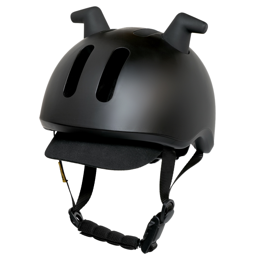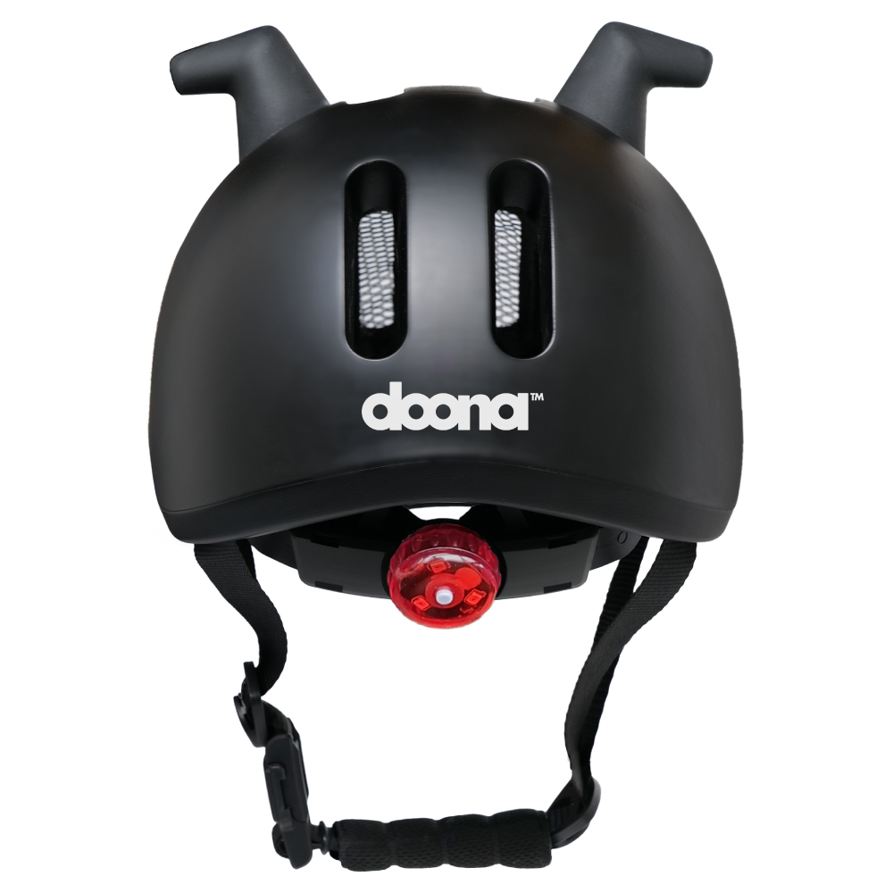Casca de protectie Doona Liki Trike este cu adevarat remarcabila datorita coarnelor sale distinctive din silicon si designului elegant negru mat. Cozorocul ofera protectie solara, in timp ce orificiile pentru flux de aer amplasate strategic, promoveaza o ventilatie optima pastrand confortul micutului aventurier.