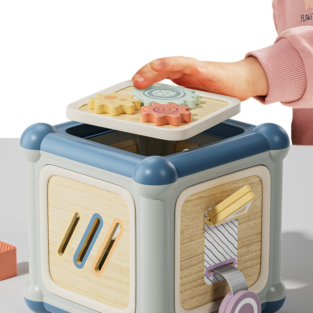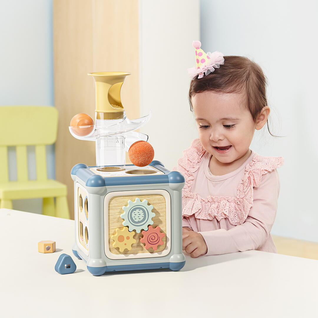 Fiecare latura a cubului ofera o noua provocare: de la sortare si potrivire la insurubare si labirinturi. Centru de activitati 10 in 1 - Cubul magic ii incurajeaza pe copii sa isi dezvolte motricitatea fina, coordonarea mana-ochi si gandirea logica intr-un mod distractiv si sigur.