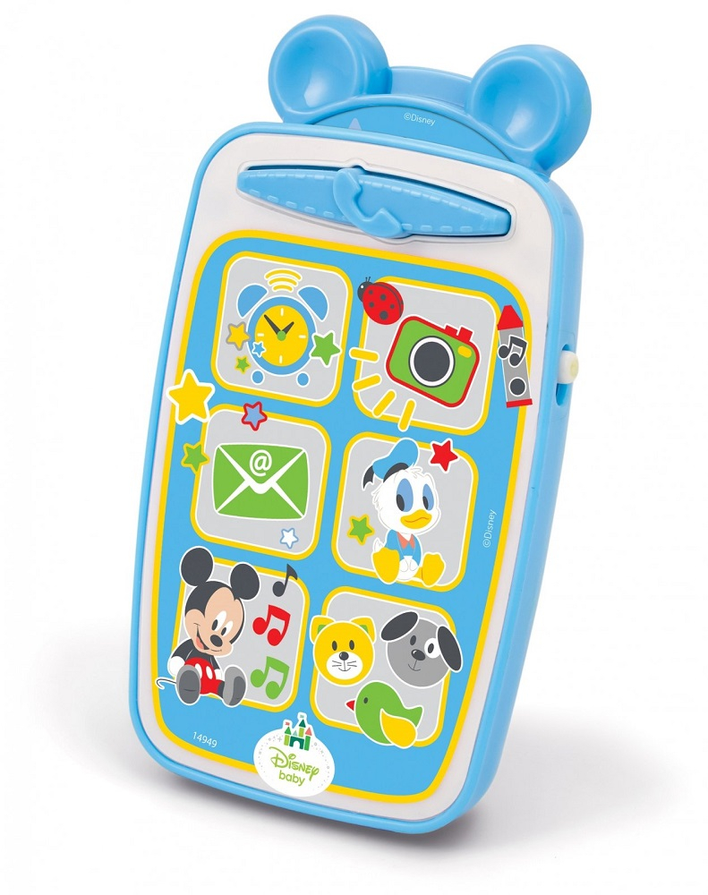 Acest smartphone Mickey este un centru de activitate, avand 6 butoane interactive ce lumineaza.