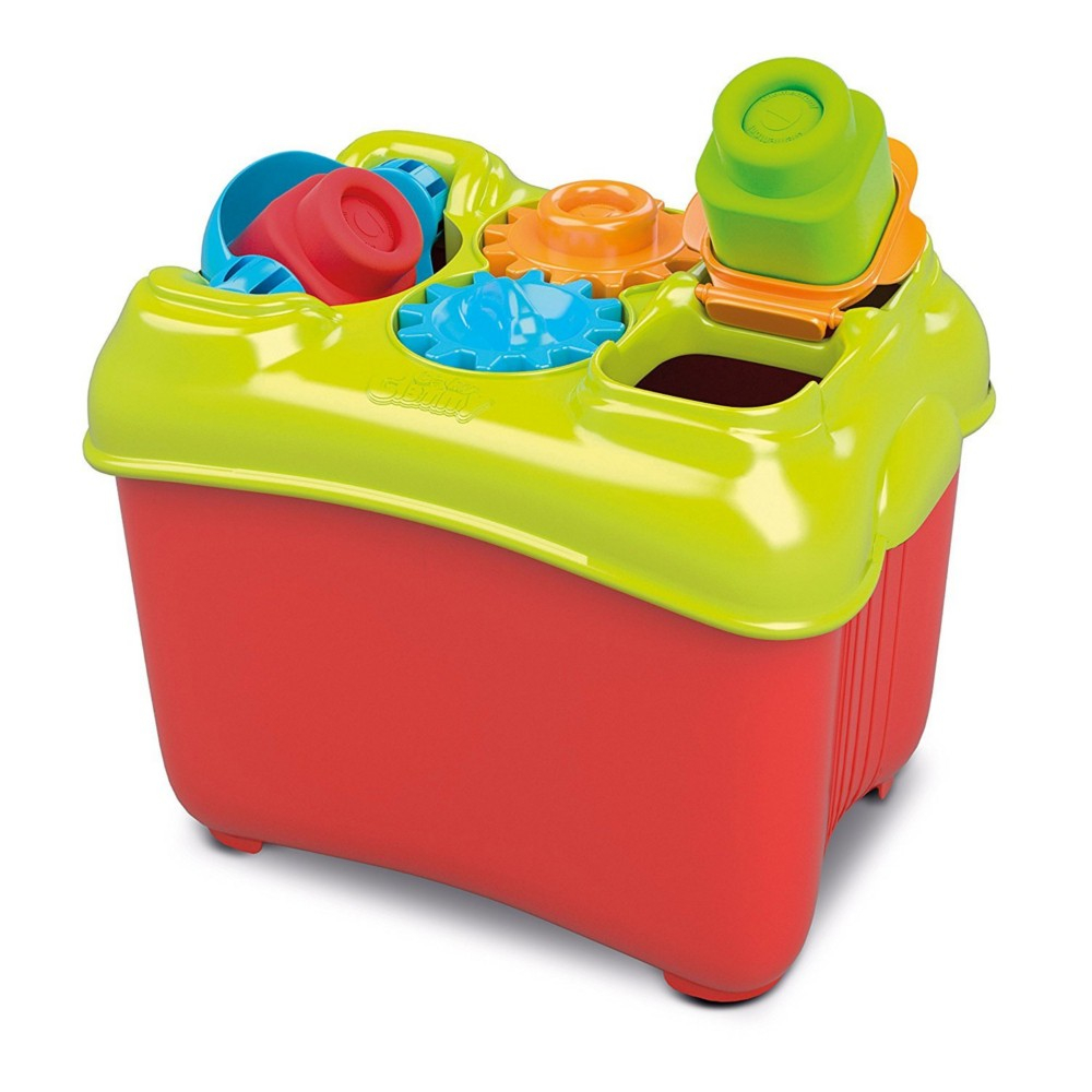 O galeata colorata cu 15 forme si un invelis amuzant cu multe activitati pentru cei mici. Cele 2 roti de pe capac chiar se rotesc. Usita care se inchide si leaganul care se roteste creeaza un efect interesant atunci cand arunca formele inauntrul cutiei. Stimuleaza dexteritatea si relatia cauza-efect.