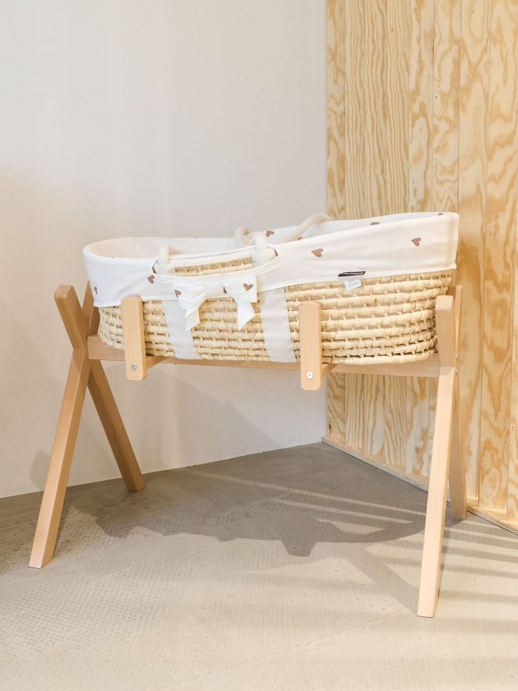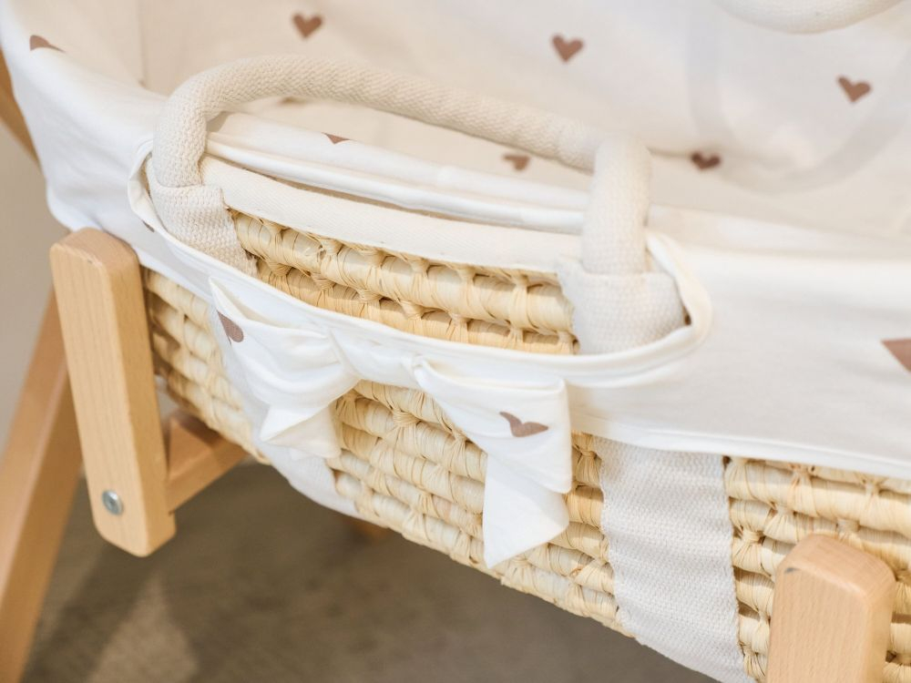 Setul Cos bebe Childhome Moise din coji de porumb cu saltea, Husa Jerse cu Inimioare include:
