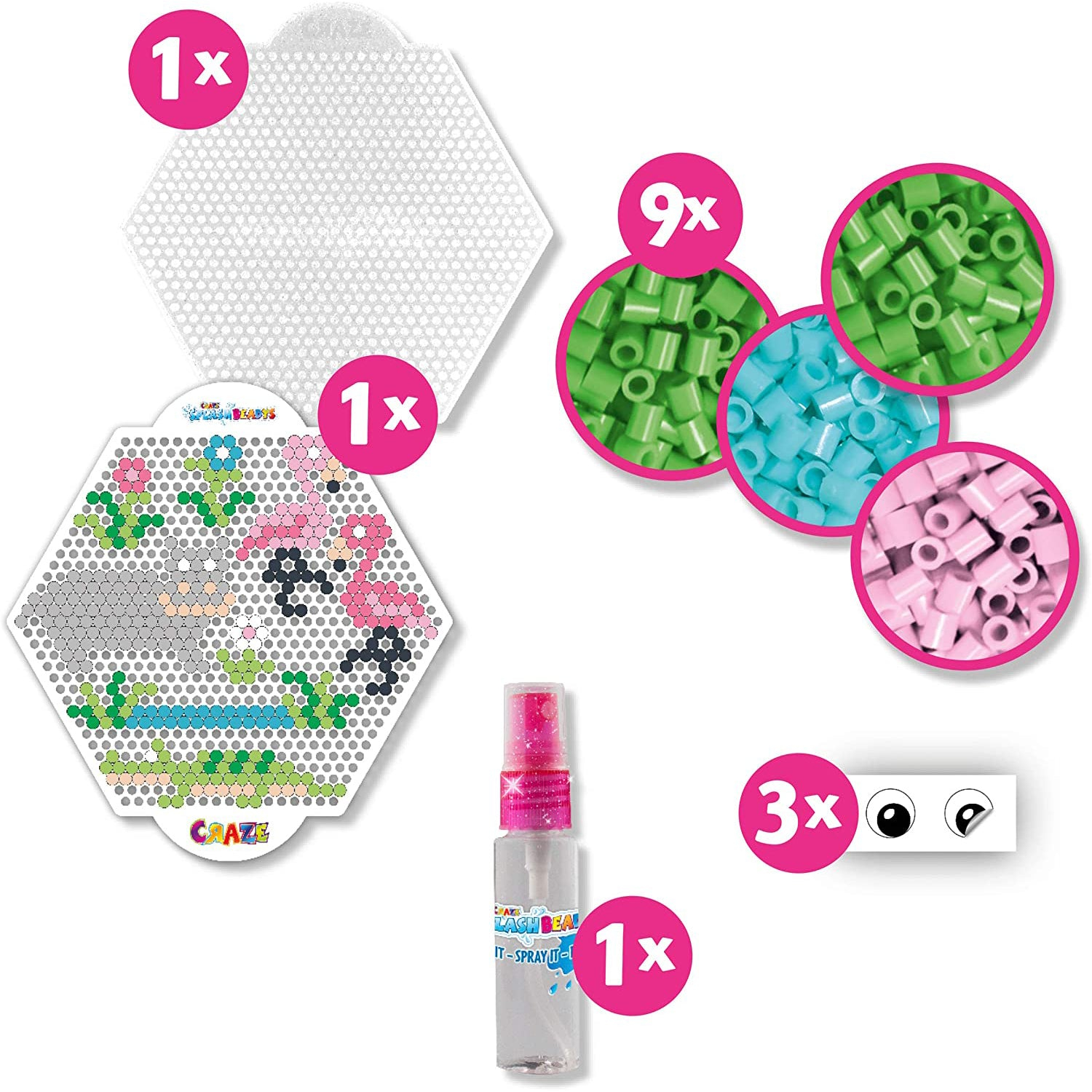 Setul este gandit pentru realizarea de modele cu tema Flamingo si foloseste margele colorate care se fixeaza cu ajutorul apei. Modul de utilizare este practic: margelele se aseaza pe placa, se urmeaza modelul dorit, apoi se pulverizeaza apa si se lasa compozitia la uscat. Craze Set Creatie Margele - Flamingo este potrivit pentru momente de joaca individuala sau pentru activitati creative supravegheate.
