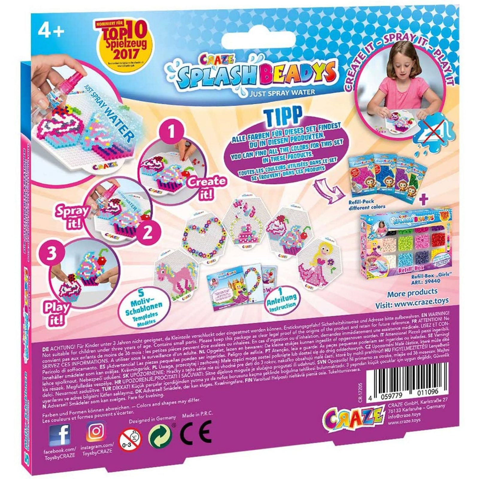 Acest set este gandit pentru creatii cu margele realizate fara caldura, prin fixare cu apa, conform sistemului de joaca prezentat pentru aceasta gama. Template-urile pot fi folosite pentru a ghida realizarea modelelor, iar ghidul inclus ajuta la intelegerea modului de utilizare. Craze - Set Template-uri Pentru Creatii Cu Margele - Fete este recomandat pentru copii de la 4 ani in sus.