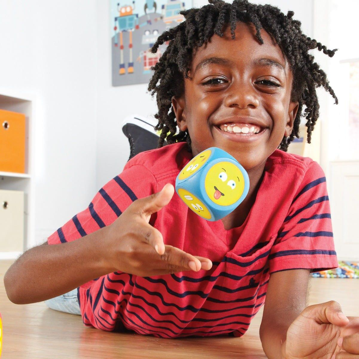 Setul Cuburi pentru conversatii - EMOJI contine 4 cuburi moi si rezistente, cu dimensiunea de 4 cm. Doua dintre cuburi sunt imprimate cu expresii EMOJI care reflecta diferite stari emotionale, iar celelalte doua includ intrebari si fraze care invita copiii sa discute despre ceea ce simt. Aceste cuburi sunt ideale pentru utilizare acasa sau in clasa, in special in orele de dezvoltare personala.