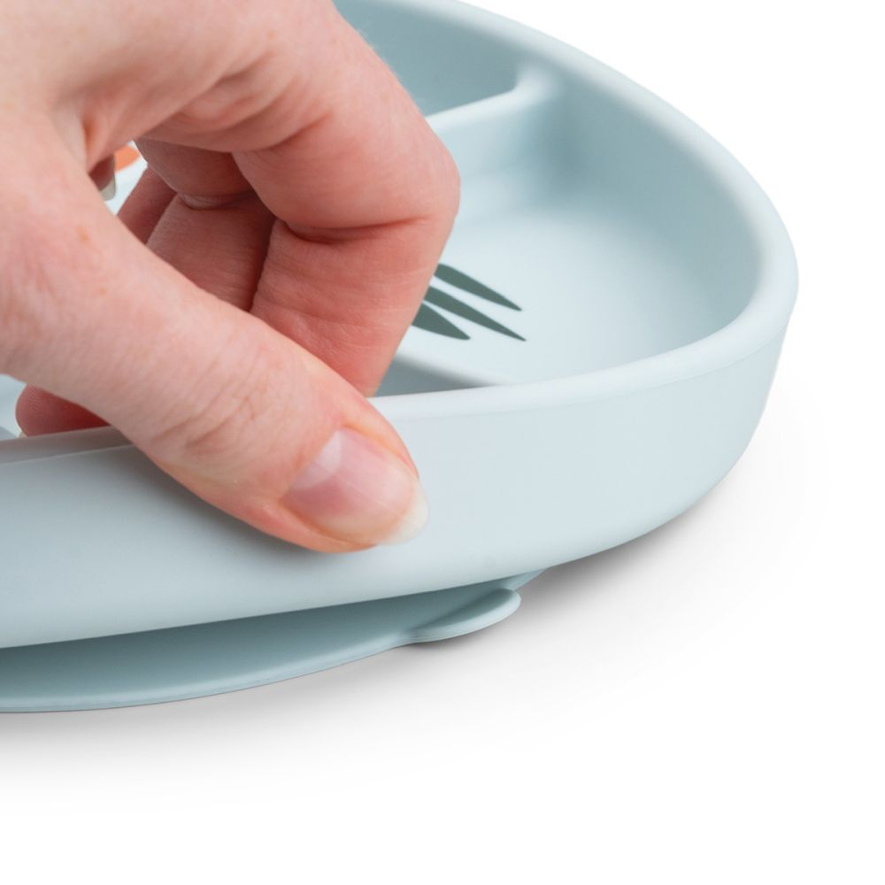 Fabricata din silicon food grade, fara BPA si alte substante nocive, farfuria este sigura pentru contactul cu alimentele. Este sigura pentru microunde, cuptor si congelator, iar curatarea se face usor in masina de spalat vase (se recomanda detergent fara parfum pentru articole din silicon).