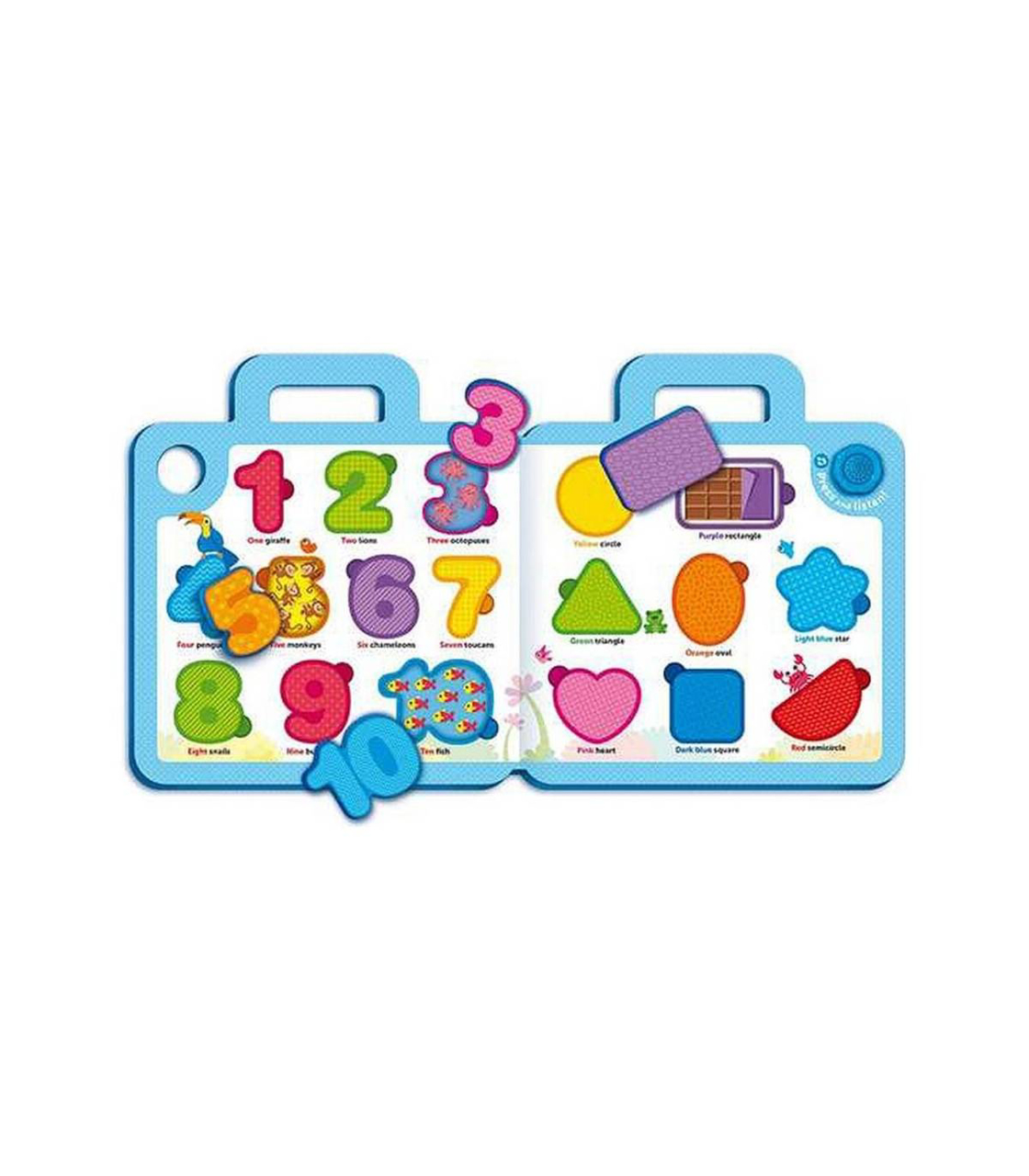 Geanta cu sunete - Numere si Forme in limba engleza este o jucarie interactiva ce ajuta copiii sa invete numerele si formele geometrice prin joaca. Cei mici se vor distra ascultand 20 de propozitii, sunete si melodii in limba engleza, stimuland astfel invatarea si dezvoltarea vocabularului.