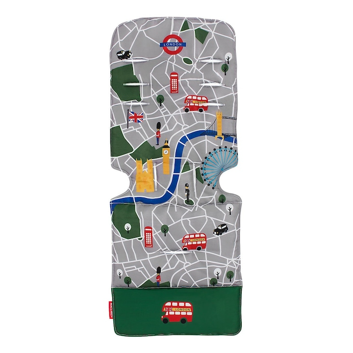 HUSA REVERSIBILA LONDON CITY MAP de la Maclaren este o husa tip insert pentru sezutul caruciorului, conceputa pentru a adauga un strat suplimentar de confort si pentru a proteja tapiteria caruciorului. Este reversibila, astfel incat poti alterna fetele in functie de preferinte sau de sezon.
