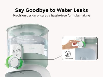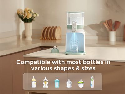 Dispenserul elibereaza apa calda direct in biberon si este compatibil cu majoritatea brandurilor si dimensiunilor de biberoane. Nu prepara formula automat si nu dozeaza pudra de lapte, ceea ce permite parintilor sa respecte masurile recomandate pentru formula folosita.