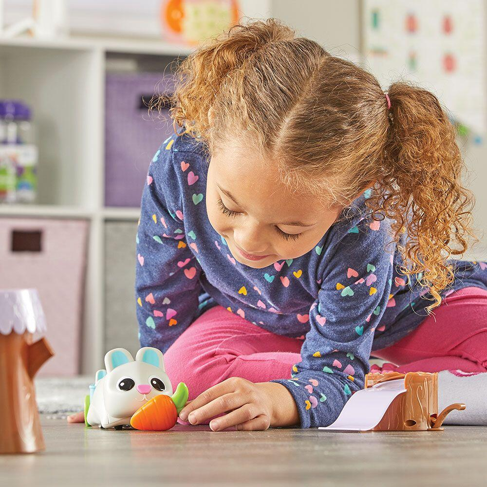 Cu Joc codare - Iepurasii jucausi, micutii pot invata prin joc concepte de stiinta, tehnologie, inginerie si matematica (STEM). Iepurasii Bopper, Hip si Hop aduc numeroase provocari ce stimuleaza gandirea analitica, critica si abilitatile de rezolvare a problemelor. Setul include o carticica cu instructiuni si accesorii precum morcov, tobogan, leagan si remorca pentru o experienta cat mai completa.