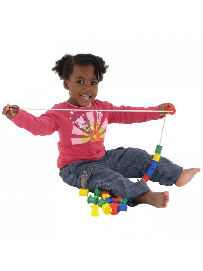Setul Joc de indemanare- Cotton Reels contine 20 de bobine din plastic rezistent, colorate divers, si un fir din bumbac, perfect pentru exercitii de indemanare si coordonare. Materialele sunt gandite pentru a rezista si a oferi ore intregi de joaca.