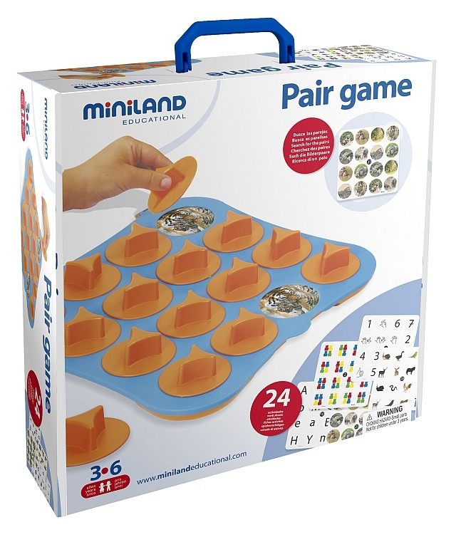 Joc de memorie 12 activitati vine cu o tabla de joc speciala, cu capac detasabil, si 12 carduri din domenii diferite: culori, animale, litere, numere, persoane, sentimente si altele. Cardurile au diferite niveluri de dificultate, asa ca jocul poate fi adaptat usor varstei copilului.