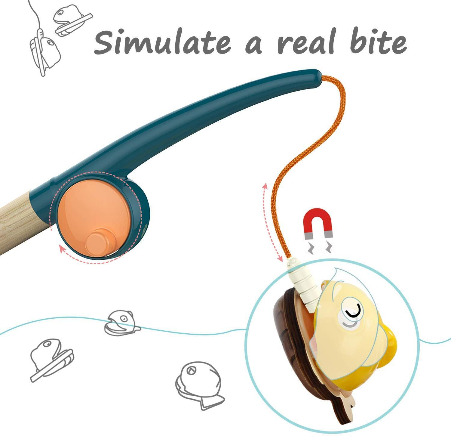 Joc magnetic de pescuit este realizat din lemn si plastic de inalta calitate, vopsit cu vopsea non-toxica conform normelor europene. Piesele sunt dimensionate special pentru mainile mici ale copiilor, fiind sigure si usor de manevrat.
