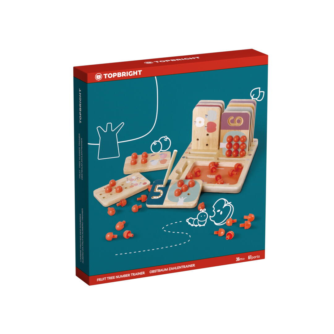Joc matematic - Copacei cu fructe include un stilou din lemn cu ajutorul caruia copiii pot trasa adanciturile cifrelor gravate, exersand astfel scrierea lor intr-un mod senzorial si captivant. Ideal pentru dezvoltarea precoce a abilitatilor de scriere si recunoastere numerica.