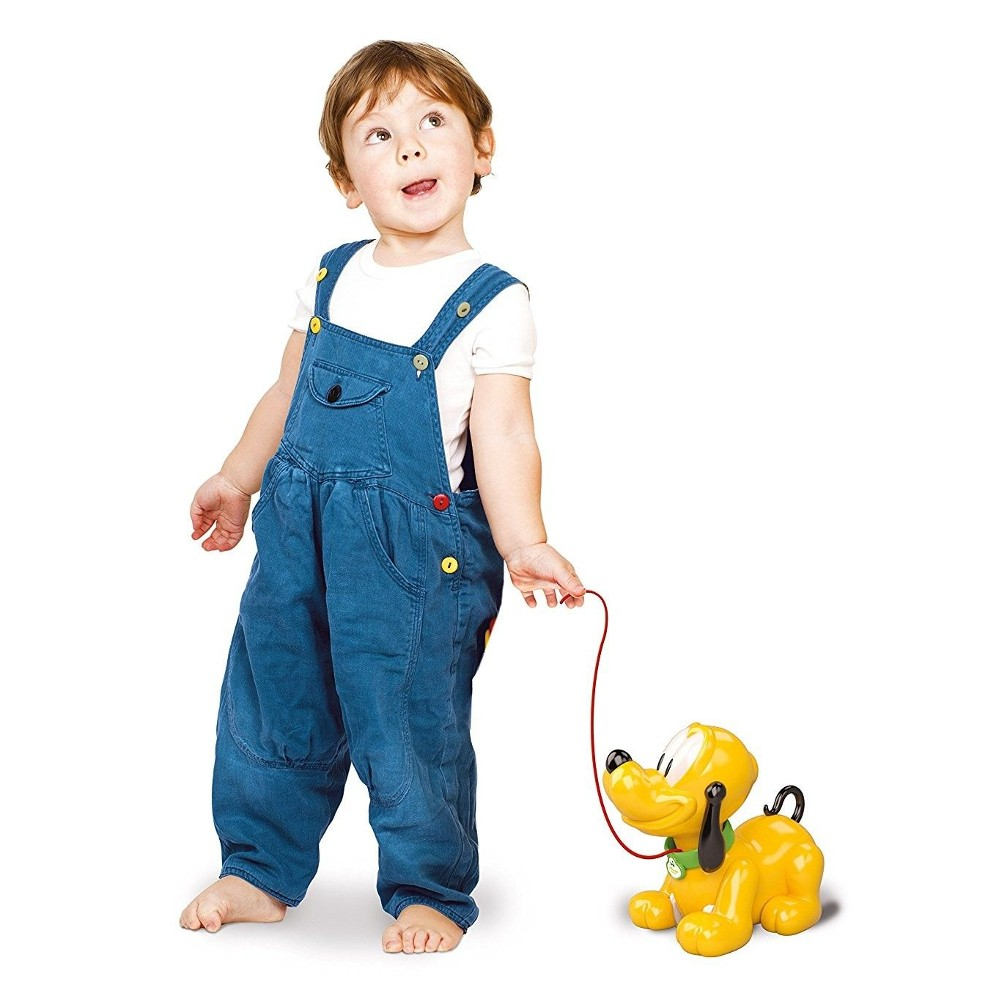 Catelusul Pluto devine o jucarie de tras foarte amuzanta si preferata de cei mici. Capul si labutele lui Pluto chiar se misca. Cand simpaticul catelus se misca scoate si un sunat dragalas. Aceasta jucarie ajuta la stimularea abitilitatilor motorii, manuale si a afectivitatii.