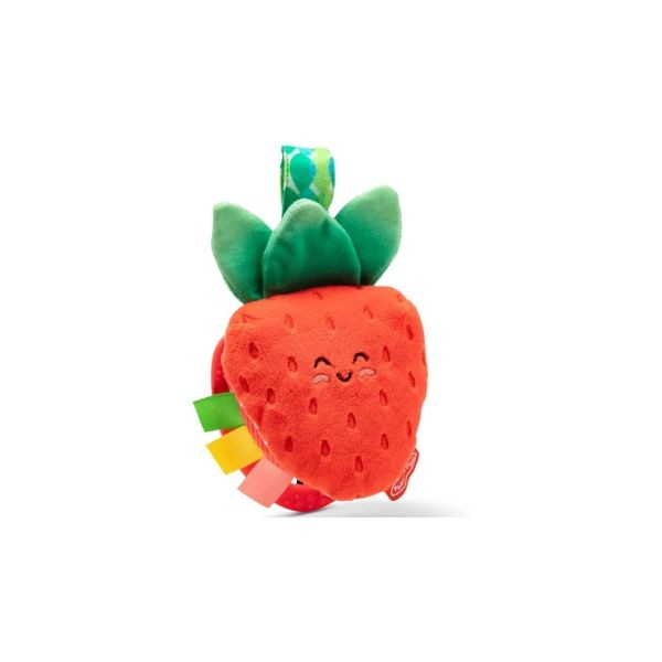 Jucarie multisenzoriala pentru bebelusi Capsunica, 18 cm se poate atasa cu usurinta la carucior, scaun auto, geanta de scutece sau scaun inalt, fiind mereu la indemana pentru a linisti sau distra copilul. Cele trei capsuni moi cu texturi diferite invita bebelusii la explorare si joaca activa.
