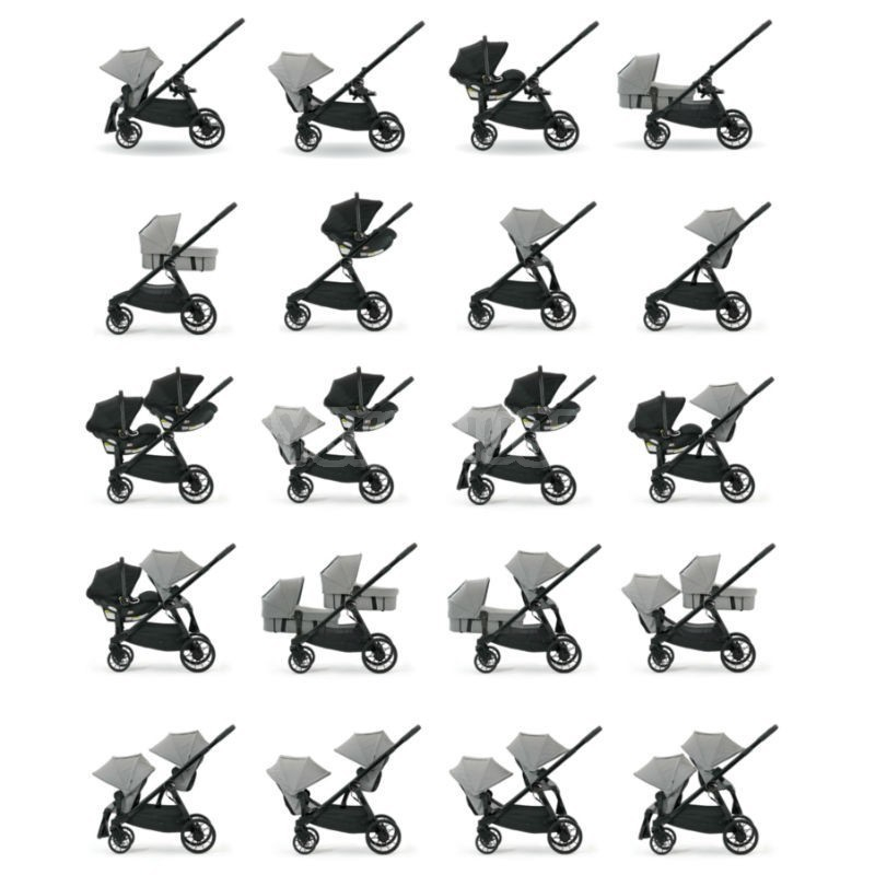 Deoarece caruciorul Baby Jogger City Select Lux poate fi folosit si pentru gemeni, puteti monta doua landouri pe sasiu, cu conditia sa fie cumparat in prealabil si sezutul pentru al doilea copil (care este necesar pentru montaj deoarece in kitul pentru a-l doilea sezut se afla accesoriul pentru montajul celui de al doilea landou si capotina).