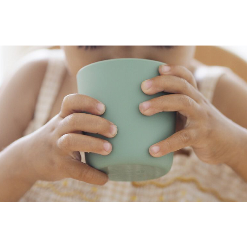 Pahar silicon Beaba Sage Green de dimensiuni mici, potrivit pentru copiii care invata sa bea singuri din cana. Paharul moale si neted din silicon, este stabil si nu exista risc de ranire pentru copii.