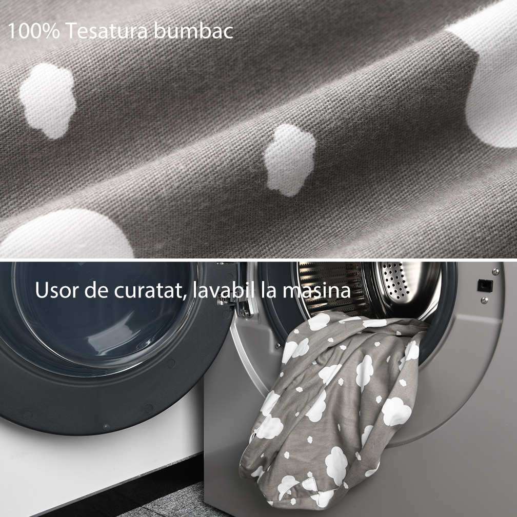 Husa detasabila se scoate rapid si se spala conform instructiunilor de pe eticheta. Perna se aeriseste usor si isi pastreaza forma dupa spalari repetate. Pentru cele mai bune rezultate, lasa husa sa se usuce complet inainte de reasamblare.