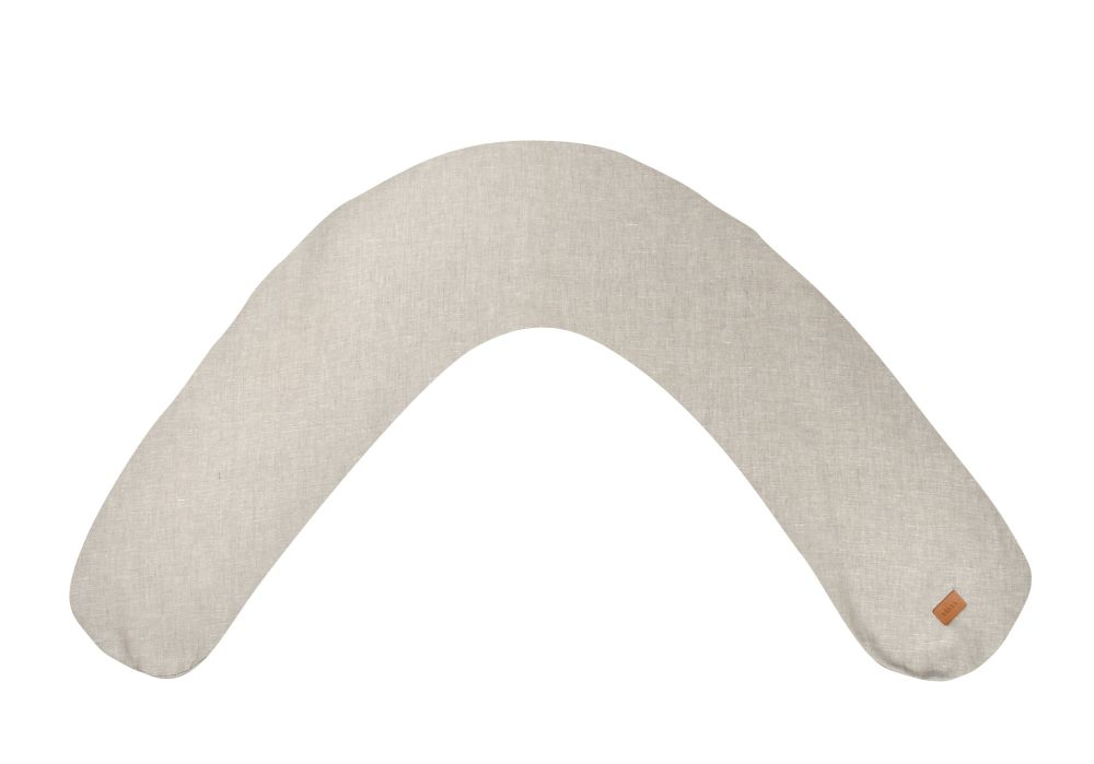 Perna gravida Beaba Big Flopsy 170 cm Natural face parte din colectia din in, gandita ca alternativa mai naturala si mai respirabila. Husa este din 100% in si este detasabila, iar umplutura este din microperle ultra-usoare, descrise ca fiind fara miros, pentru o adaptare mai buna la formele corpului. Textilul este mentionat ca Oeko-Tex clasa 1, iar colectia este asociata si cu certificarea European Flax.