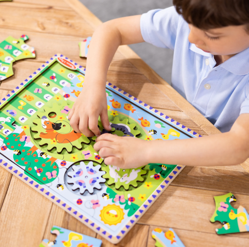 Puzzle din lemn cu rotite dintate pentru invatarea numararii prin joaca Animale vesele este recomandat copiilor cu varsta de peste 3 ani, fiind o jucarie educativa ideala pentru activitati individuale sau de grup.