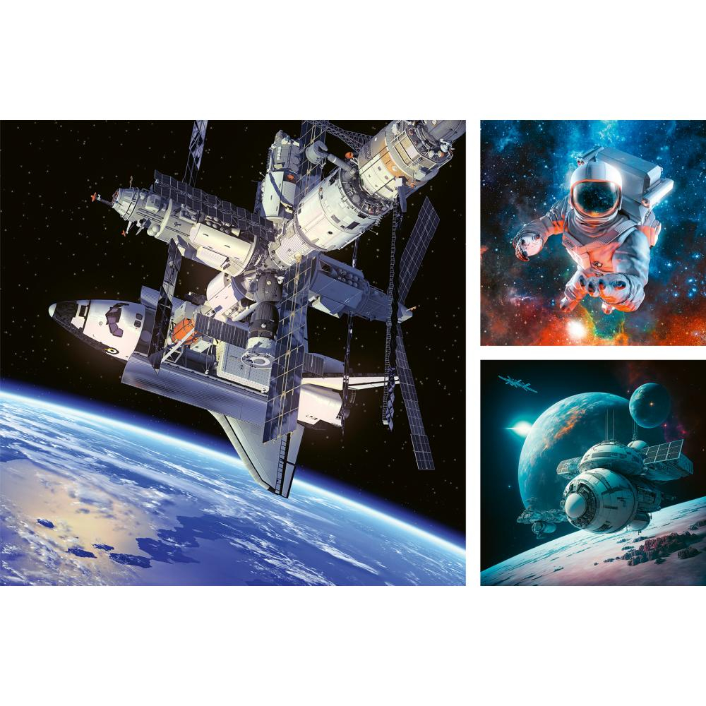 Produs in Germania, Ravensburger - Puzzle in spatiu 3x49 piese beneficiaza de tehnologia Softclick, care ofera o fixare perfecta si intuitiva. Piesele sunt realizate din carton gros, durabil, iar hartia speciala reduce reflexiile si ofera o imagine clara. Fiecare piesa este unica si se potriveste doar intr-un singur loc, garantand o experienta placuta si ordonata.