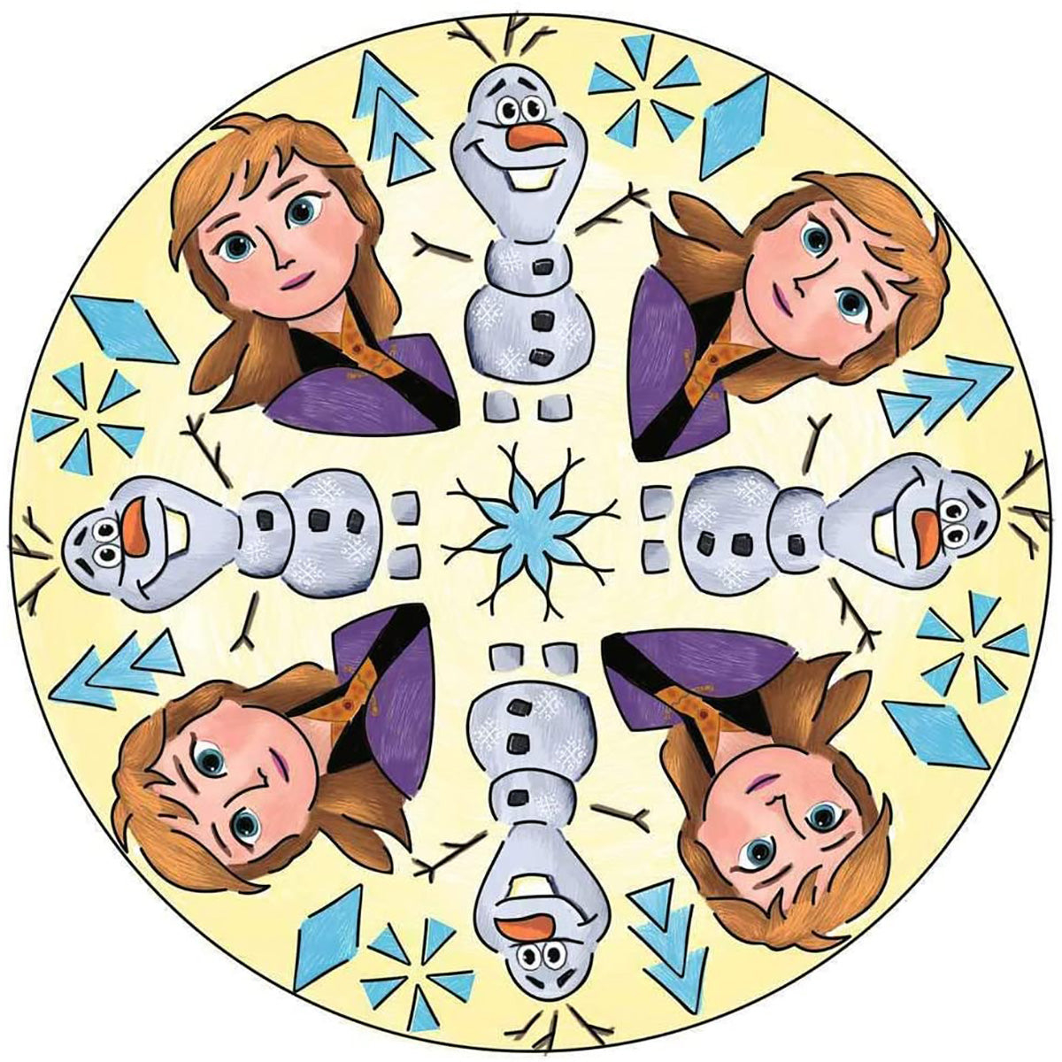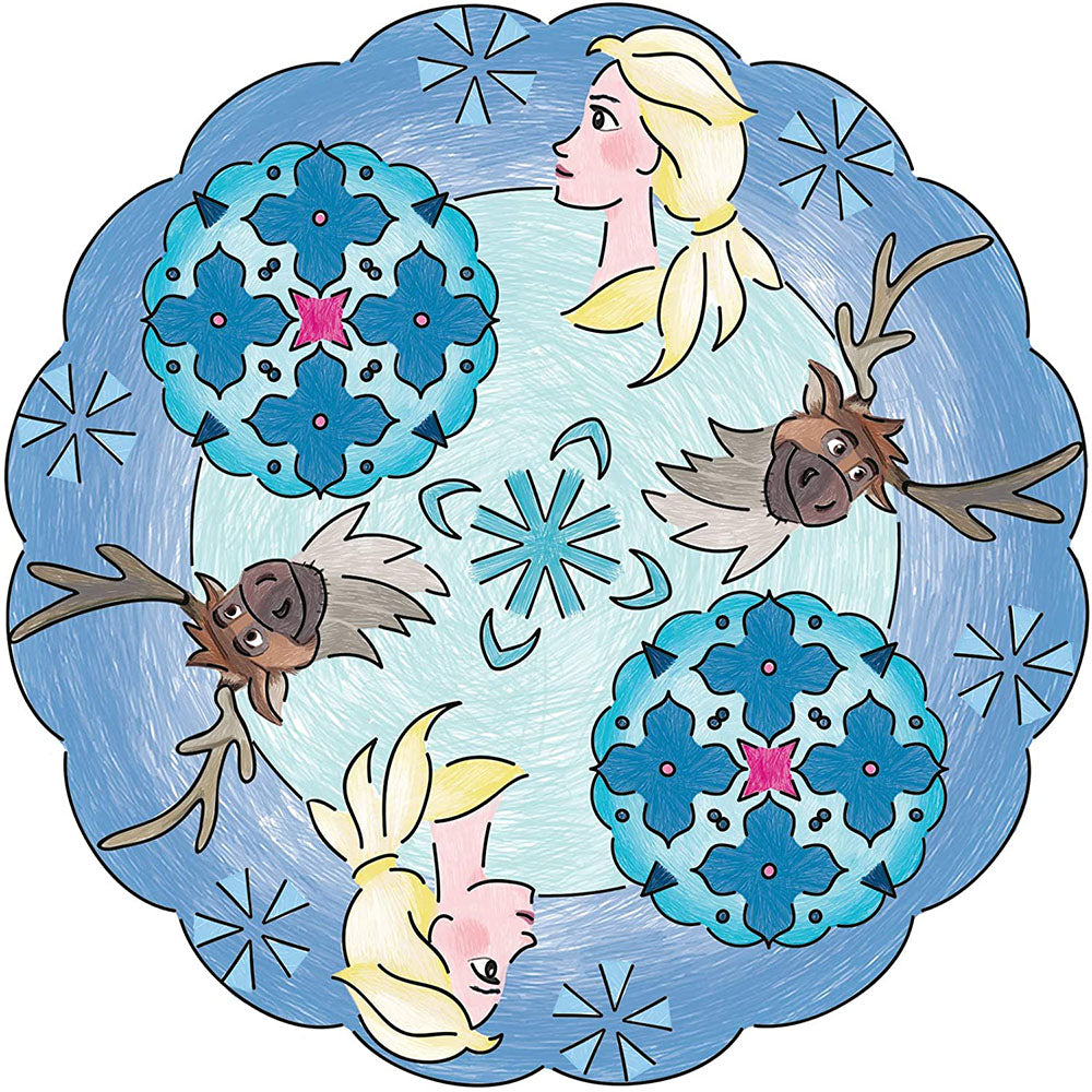 Cu Ravensburger - Set De Creatie Midi Mandala Frozen II, fiecare mic artist poate crea mandale minunate inspirate din universul Frozen. Setul contine un sablon mare si unul mic, care pot fi combinate pentru a obtine modele spectaculoase cu personaje si motive din Frozen II.