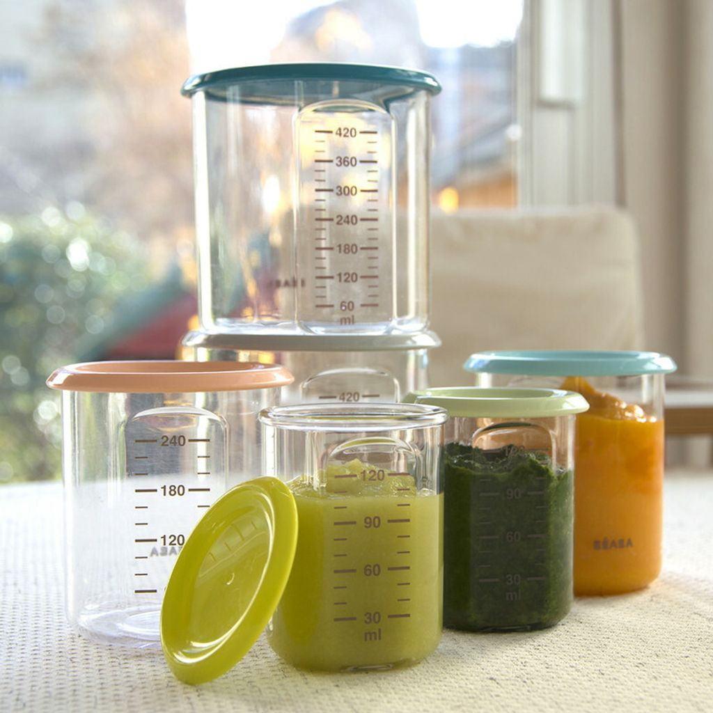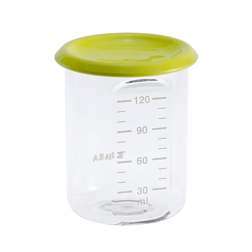 Recipient ermetic din Tritan Beaba 120 ml Neon, gradat, cu inchidere ermetica, ideal pentru refrigerarea si pastrarea hranei bebelusului.