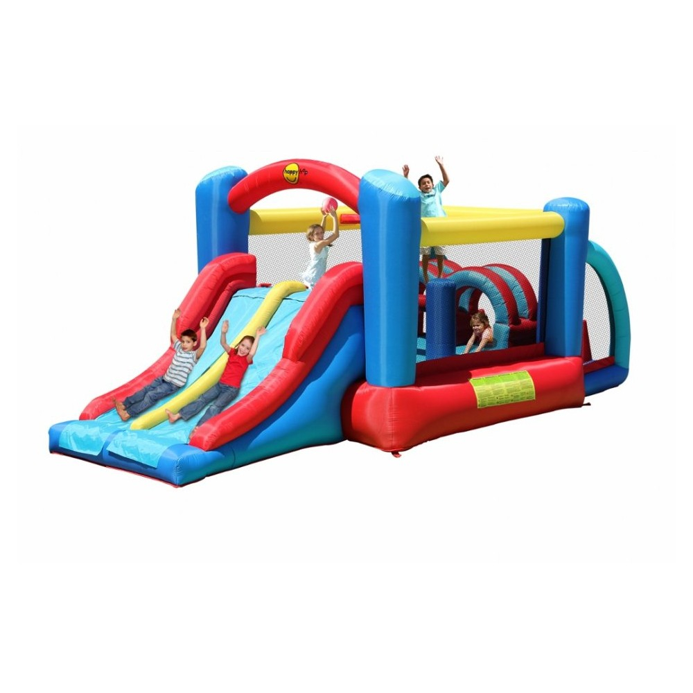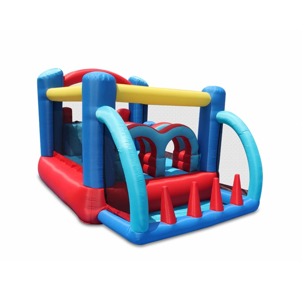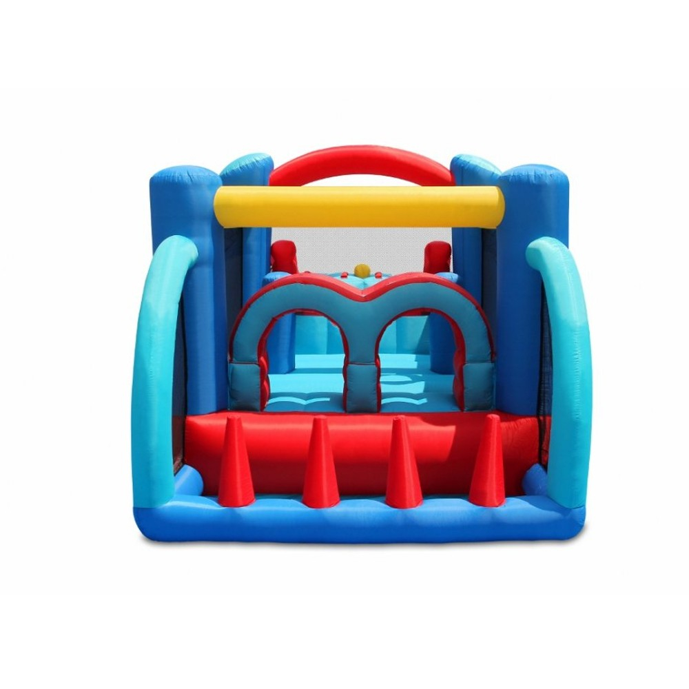 Spatiu de joaca gonflabil pentru sarit. Spatiul de joaca este gata de folosit in maxim 2 minute si este conectat in permanenta la un compresor de aer. Materialele folosite sint de o calitate foarte buna, plasa de siguranta din dotare asigura protectia utilizatorilor.