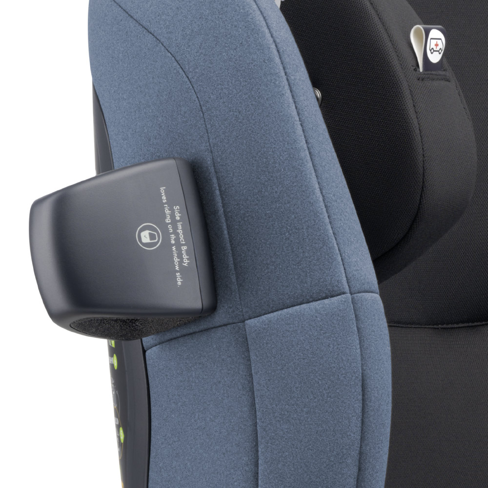 - Sisitem patentat de protectie laterala continua. Capul, umerii si partile laterale sunt protejate in mod continuu, chiar si atunci cand tetiera este in cea mai inalta pozitie.
