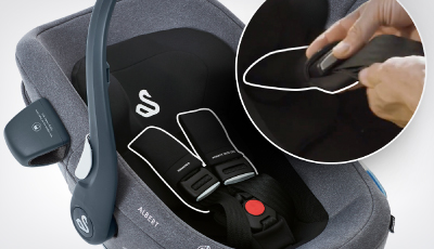Ghidajele centurii de siguranta asigura o fixare usoara a scoicii auto pe bancheta masinii.