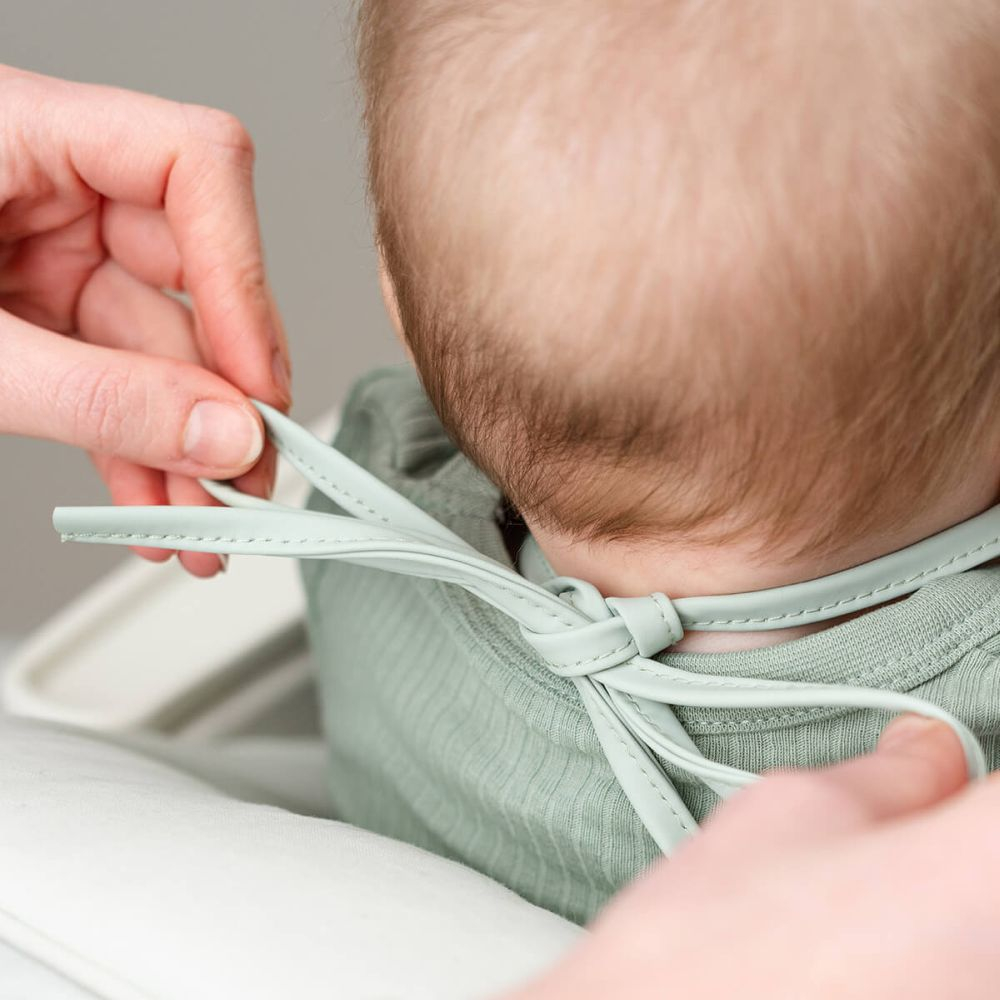 Leaga snurul pentru potrivire confortabila si ajusteaza dupa nevoie. Dupa masa, sterge cu o laveta umeda sau clateste sub jet de apa; suprafata waterproof se usuca rapid pentru urmatoarea utilizare.
