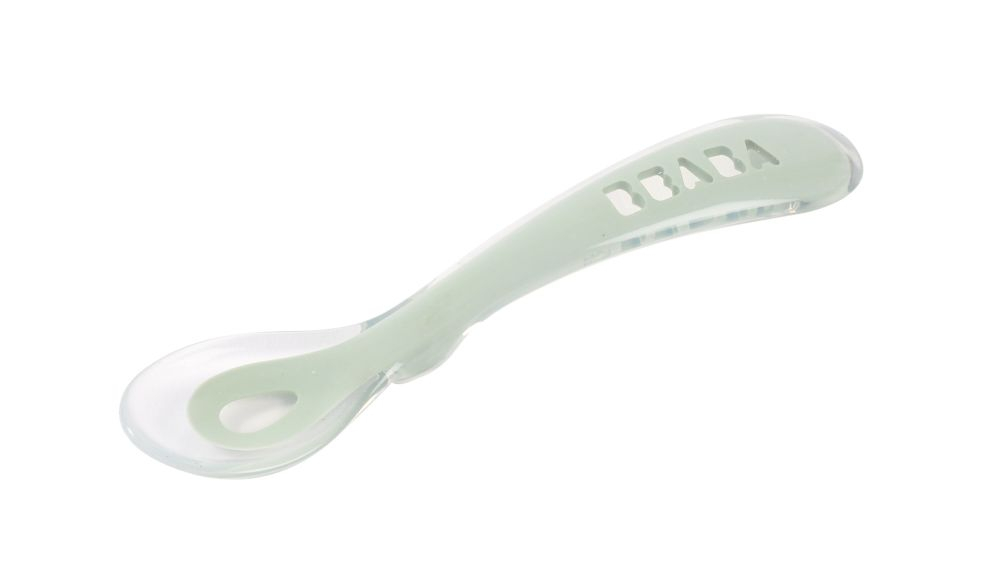 Set 2 lingurite silicon Beaba +8 luni Misty Green are un maner scurt, ergonomic, proiectat pentru prinderea in mana copilului. Partea concava a linguritei este adaptata gurii celor mici, astfel incat preluarea mancarii sa fie mai confortabila. Nuanta Misty Green completeaza frumos seturile de masa Beaba.