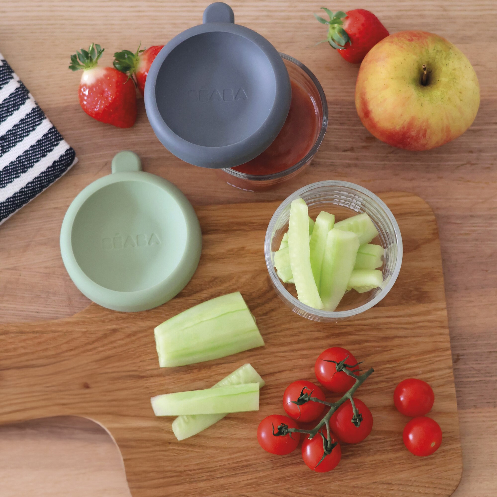 Set 2 recipiente ermetice sticla Beaba 150 ml Mineral/Sage Green ofera solutia perfecta pentru pastrarea si organizarea hranei bebelusului in conditii de siguranta si prospetime. Set 2 recipiente ermetice sticla Beaba 150 ml Mineral/Sage Green sunt realizate din sticla borosilicatica extra-rezistenta, care nu se decoloreaza si nu se deformeaza in timp. Set 2 recipiente ermetice sticla Beaba 150 ml Mineral/Sage Green include capace soft-clip din silicon cu inchidere ermetica, pentru a mentine aromele si a preveni scurgerile.