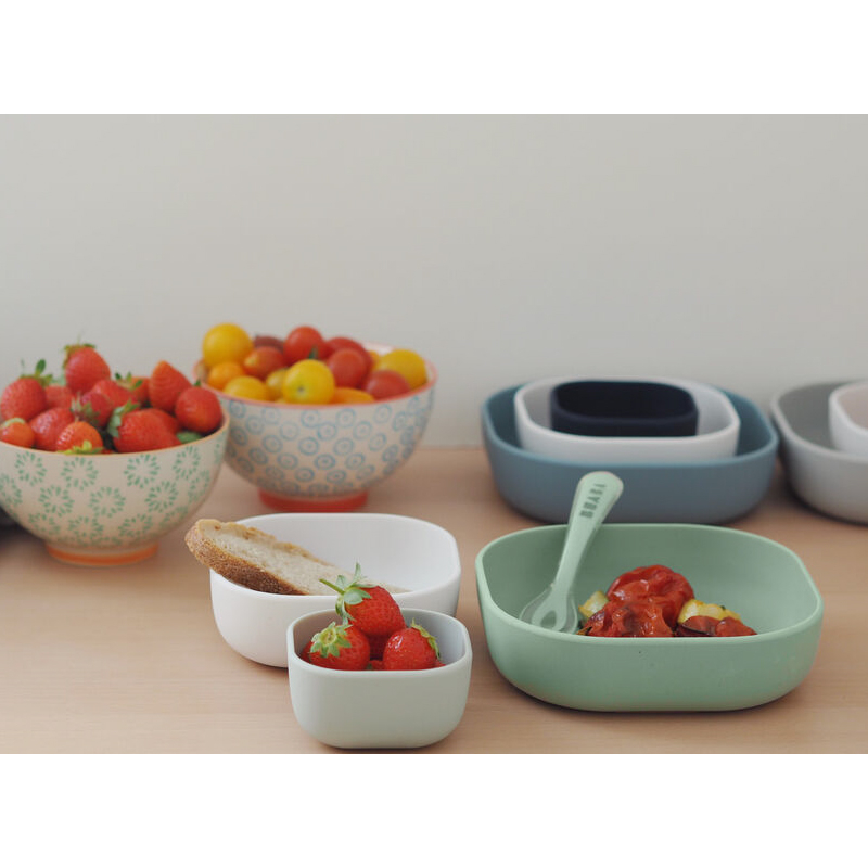 Set 3 boluri din silicon Beaba Sage Green – material sanatos, moale, durabil si silentios.