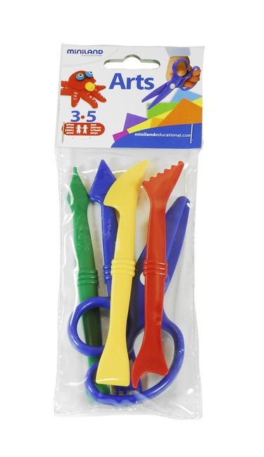 Setul include 5 unelte realizate din plastic rezistent, special concepute pentru a modela, taia si netezi plastilina. Set 5 accesorii pentru modelaj - Miniland este perfect pentru utilizarea acasa, la gradinita sau in cadrul atelierelor de arta pentru copii.