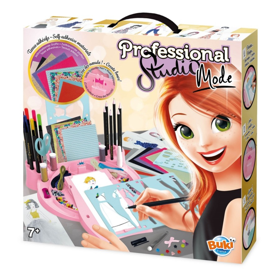 Alegeti un personaj, creati tinute cu ajutorul sabloanelor si apoi completati-le folosind multele accesorii incluse: tesaturi autoadezive, pene, sclipici, flanela, panglici, carioci, acuarele, foarfece, o ascutitoare de creioane si multe altele.